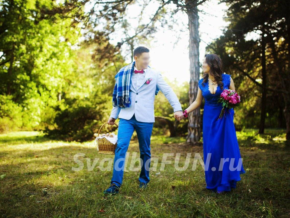 Идти пришлось минут 10-15, на финише меня ждала корзинка с продуктами. Через пять минут на горизонте, с другой стороны, появился жених с пледом и шариками. Это было очень трогательно!