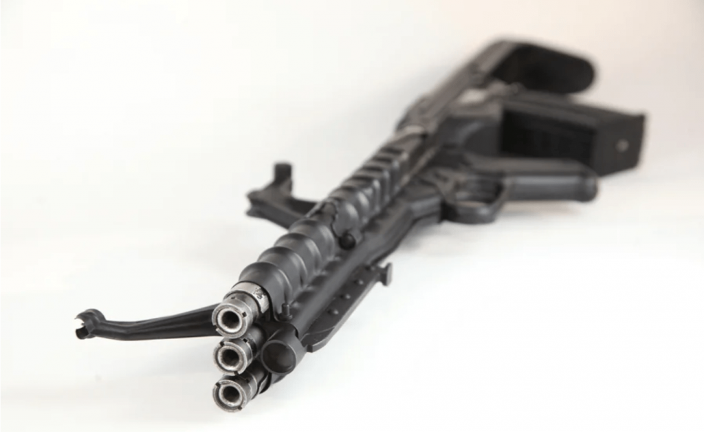 Именно по этой схеме сделан самый необычный проект Коробова – трехствольный залповый автомат ТКБ-059. Устройство можно принять за причуду оружейника, но тем не менее у него были реальные перспективы. Основной задачей Коробова было достижение сверхбыстрой очереди, при которой отдача от выстрелов не успевает отклонить ствол и позволяет добиться высокой кучности стрельбы. Три ствола давали фантастическую скорость стрельбы в 1400-1800 выстрелов в минуту. Многие узлы и детали ТКБ-059 были унифицированы с автоматами Калашникова.