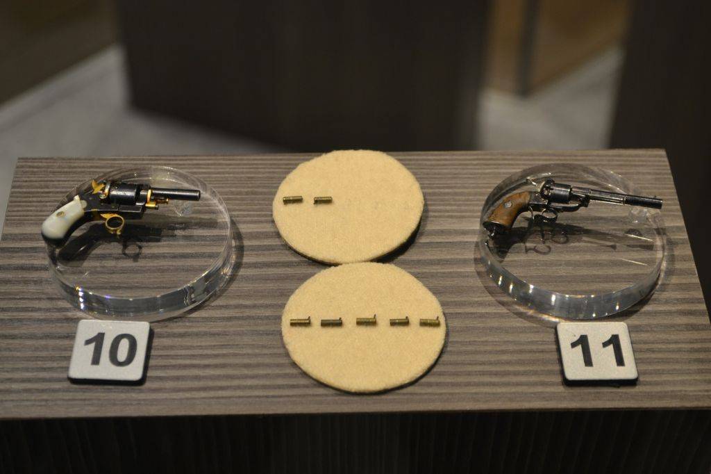 В тульском оружейном музее среди прочего мини-оружия хранятся два миниатюрных пистолета, созданных учениками заводской школы в 90-е годы XIX века. Это шестизарядные шпилечные револьверы системы Лефоше с калибром 1 миллиметр. Размером эти пистолетики со спичечную коробку. Миниатюрная пуля револьвера может пробить бумажную мишень с 5 шагов. Эти пистолеты – довольно точные копии уставного оружия тех лет, выполненные в масштабе 1 к 6. Рукоятка одного из них сделана из рога, другого – из белого перламутра. Точность и изящность оружия говорят о высоком мастерстве молодых тульских оружейников XIX века.