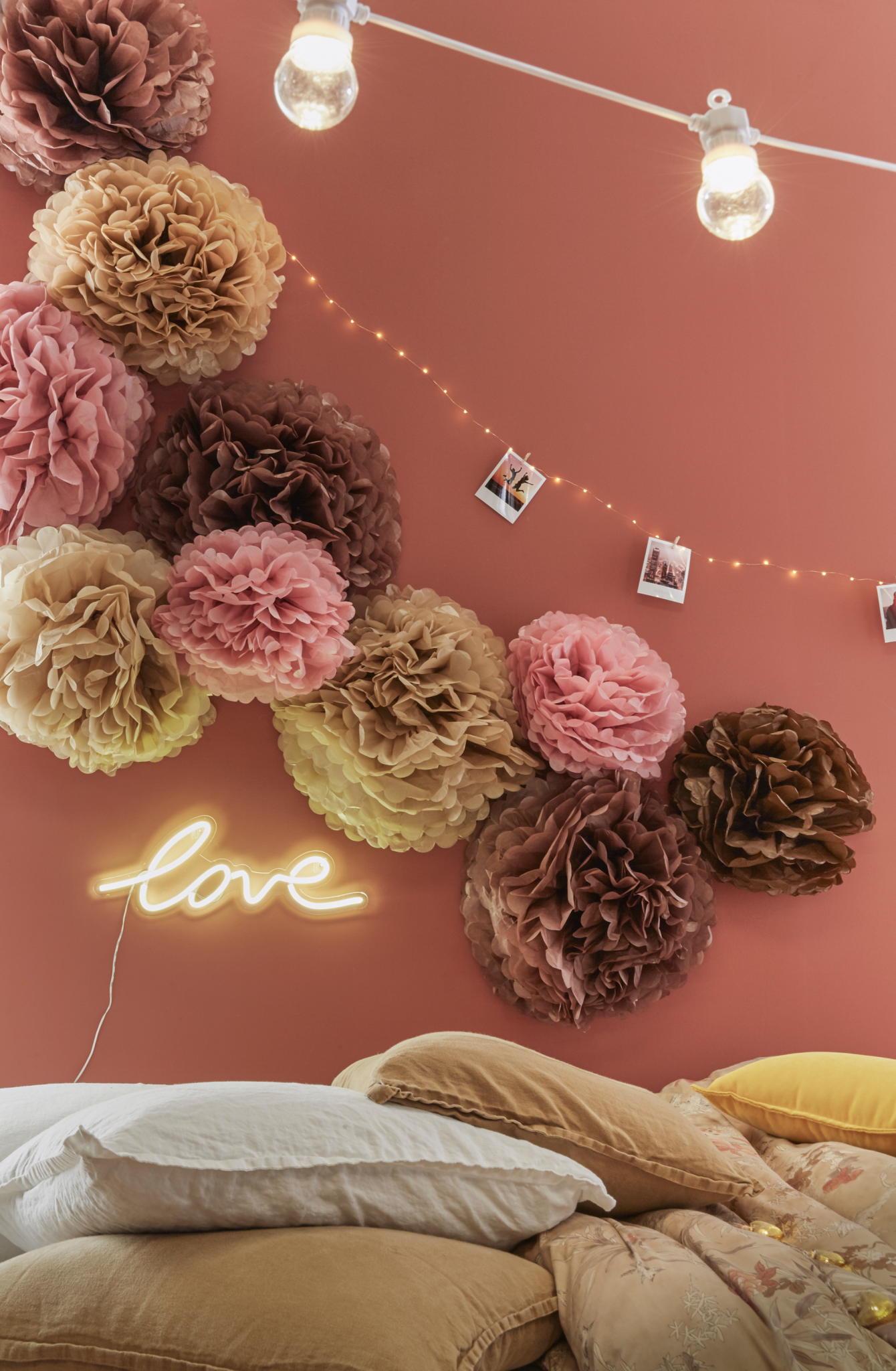 А еще можно наклеить на стену крупное слово «LOVE», что всегда выглядит романтично и красиво: