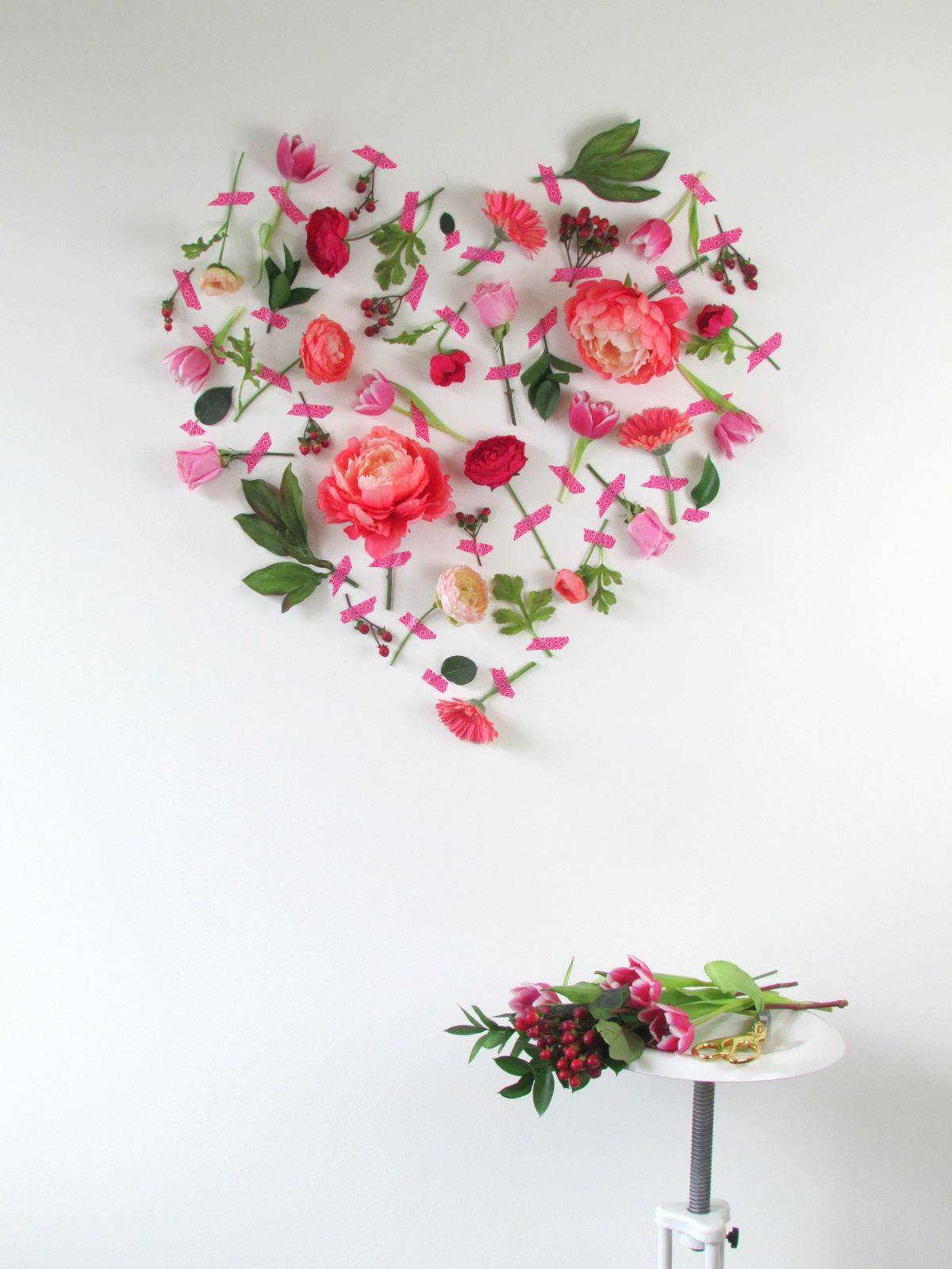 В этот волшебный день все должно напоминать о нежности и любви. На стене можно повесить крупное картонное сердце, по краям обклеенное цветочками из гофробумаги, а в центре – поместить вашу совместную фотографию.