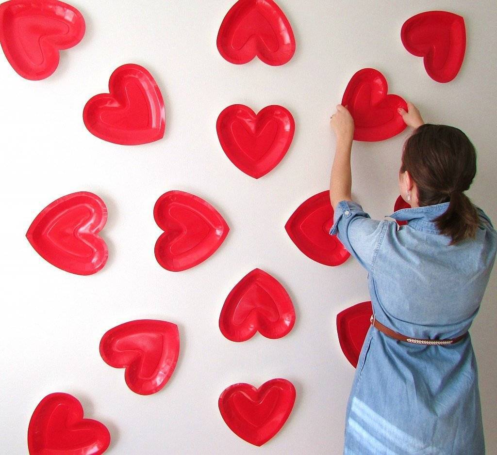 При наличии свободного места на стене в коридоре или гостиной, развесьте по ней гирлянды из сердечек и фразы с хорошими пожеланиями либо признаниями в любви: