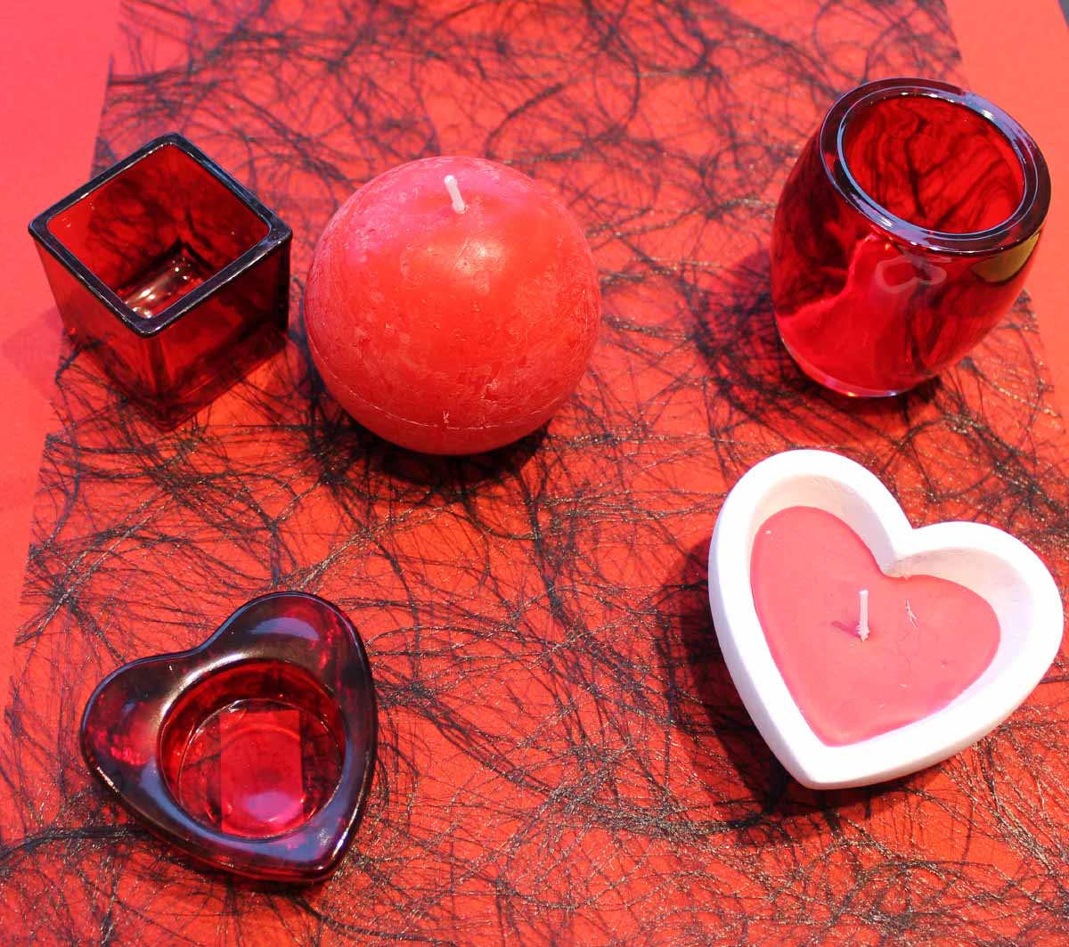 Для этого понадобятся разные дополнительные предметы. Первое это поднос, на котором будет сформирована композиция. Свечу можно поставить на возвышенный предмет или в красивый бокал и перевязать его красной лентой. По кругу выложить фрукты или поставить букет цветов, желательно небольшой. Когда в комнате потухнет свет, огонек будет рассеивать свои лучи при помощи бокала по всем направлениям и озарять светом все вокруг.