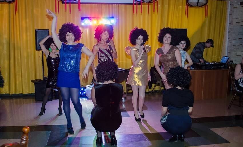 Поскольку диско-тематика предполагает танцы, танцы, и еще раз танцы, корпоратив в такой стилистике уместнее всего проводить в ночном клубе. Идеальный вариант – если в выбранном вами развлекательном заведении будет отдельный диско-зал, в котором вам нужно только заранее заказать столики на общее число гостей.