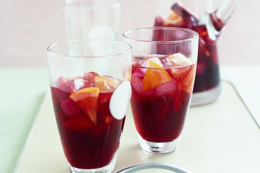 Популярный коктейль «Сангрия» готовится на основе вина, но можно сделать и безалкогольный вариант с соком. Сок желательно использовать свежевыжатый.