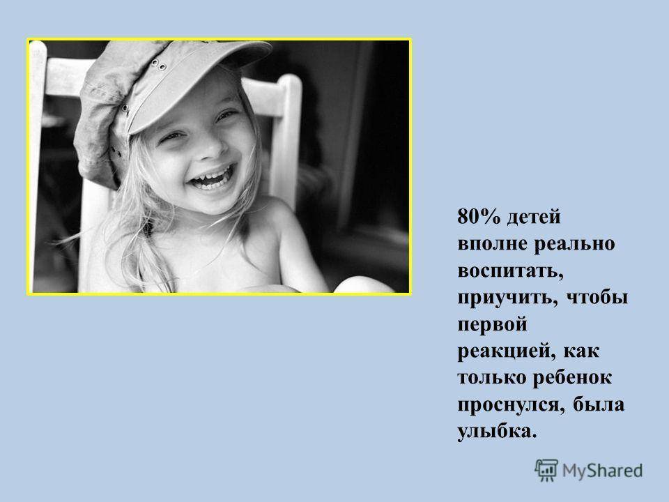 80% детей вполне реально воспитать, приучить, чтобы первой реакцией, как только ребенок проснулся, была улыбка.
