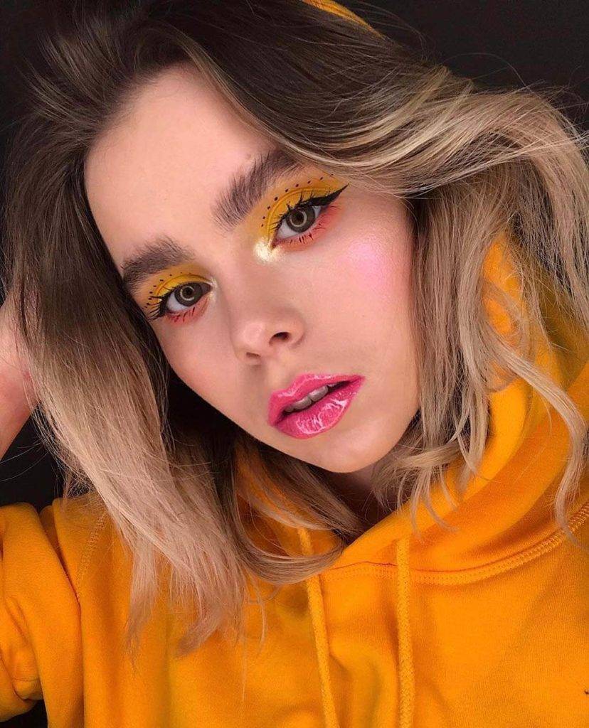 Контраст карих глаз и светлых волос делает внешность яркой и заметной, несомненно привлекающей всеобщее внимание. В зависимости от желаемого эффекта с помощью мейкапа можно уравновесить сочетание или сделать контраст более заметным