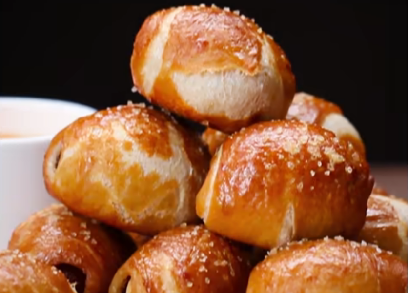 В процессе приготовления потребуется варка полуфабрикатов в содовом растворе. Это всего 20-30 секунд. Можно просто опустить полуфабрикаты в горячий содовый раствор и вытащить. Процедура обязательна. Так мякиш не станет сильно подниматься в духовке. Приобретет консистенцию пончика.