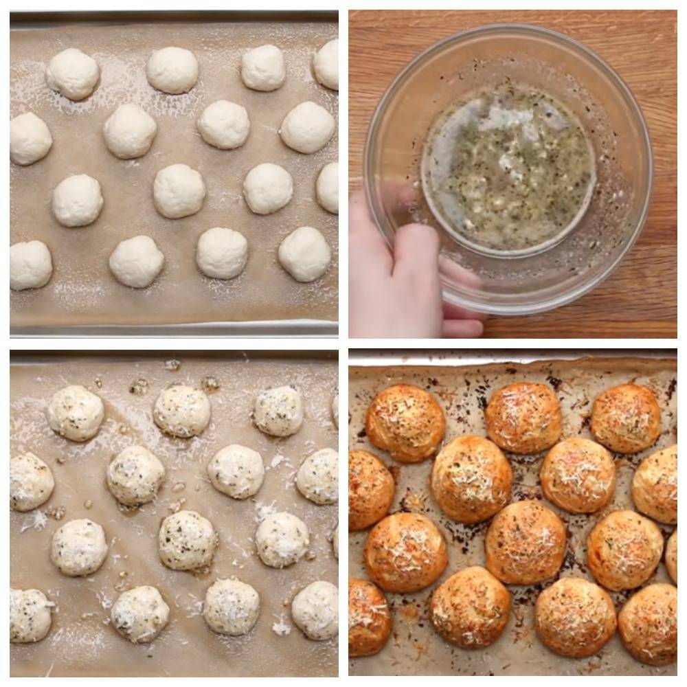 Разделите тесто на равные части – 16 штук. Удобно воспользоваться кухонными весами. Каждый кусок теста должен быть около 50-60 г. Скатайте в шарик на ладони. Сильно комки не мните, они должны быть воздушными.