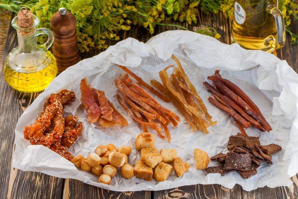 Сухарики, соленый арахис, картофель фри, чипсы – эти продукты в США называют «мусорная еда», и не зря. Снеки к пиву вредны и содержат много калорий. Единственное их преимущество – доступность, но истинные любители пива редко выбирают себе такую закуску, поскольку она перебивает вкус напитка. Альтернативой являются домашние чесночные гренки и снеки из мясных продуктов, нарезанные тонкими длинными ломтиками. Такие закуски быстро и просто подать к столу, они полезнее, вкуснее, дополняют аромат напитка.