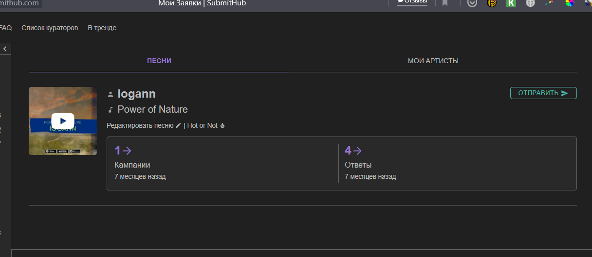 Моя рекламная кампания в SubmitHub